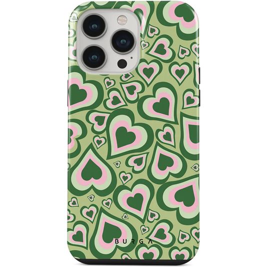 Gib deinem Telefon robusten Schutz mit dem Burga Tough backcover. Diese Hülle schützt die Rückseite und die Seiten deines Apple iPhone 14 Pro. Das robuste Design bietet eine solide Verteidigung gegen Schäden durch Stürze und Unfälle.