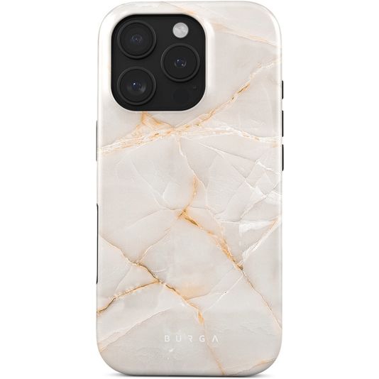 Gib deinem Telefon robusten Schutz mit dem Burga Tough backcover. Diese Hülle schützt die Rückseite und die Seiten deines Apple iPhone 16 Pro. Das robuste Design bietet eine solide Verteidigung gegen Schäden durch Stürze und Unfälle.