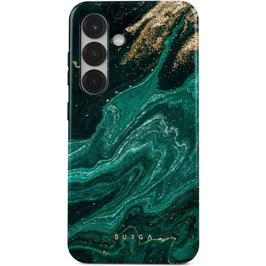 Schütze dein Samsung Galaxy S25 vor Schäden mit dem Burga Tough Backcover aus stabilem Kunststoff. Die Hülle kommt in der Farbe emerald pool und deckt die Rückseite und die Seite deines Handys ab. Die Vorderseite bleibt mit diesem Backcover frei, sodass dein Bildschirm immer direkt zugänglich ist.