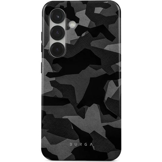 Schütze dein Samsung Galaxy S25 vor Schäden mit dem Burga Tough Backcover aus stabilem Kunststoff. Die Hülle kommt in der Farbe night black camo und deckt die Rückseite und die Seite deines Handys ab. Die Vorderseite bleibt mit diesem Backcover frei, sodass dein Bildschirm immer direkt zugänglich ist.
