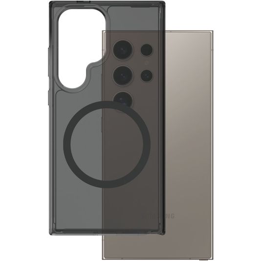 Nutze die Vorteile von MagSafe mit deinem Samsung Galaxy S25 Ultra mit der CARE by PanzerGlass Flagship Samsung Galaxy S25 Ultra Backcover Hülle mit MagSafe Magnet. Die MagSafe Hülle besteht aus stabilem Kunststoff und ist in der Farbe smokey urban erhältlich. Mit dieser Samsung Galaxy S25 Ultra MagSafe Hülle kannst du beliebiges MagSafe-Zubehör wie ein Ladegerät oder eine Halterung befestigen.