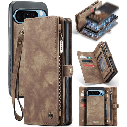 CaseMe 008 Google Pixel 9 Pro XL Hülle Abnehmbare 2in1 Klapphülle Geldbörse - Braun