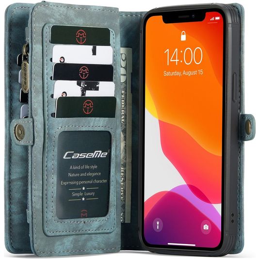 Caseme 008 iPhone 12 Hülle Abnehmbare 2in1 Klapphülle Geldbörse - Blau