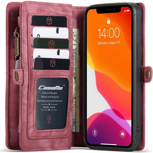 Caseme 008 iPhone 12 Hülle Abnehmbare 2in1 Klapphülle Geldbörse - Rot
