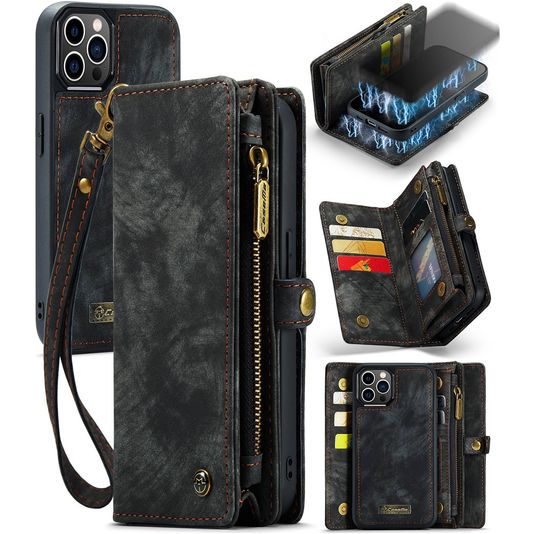 Caseme 008 iPhone 12 Hülle Abnehmbare 2in1 Klapphülle Geldbörse - Schwarz