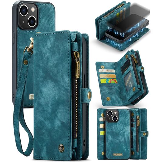 Caseme 008 iPhone 13 Hülle Abnehmbare 2in1 Klapphülle Geldbörse - Blau