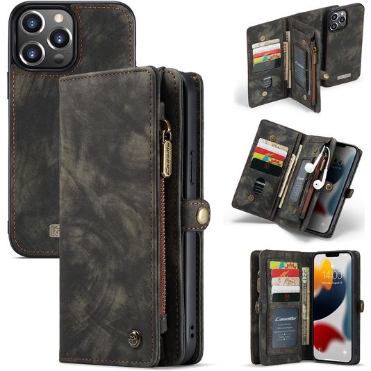 Caseme 008 iPhone 13 Pro Max Hülle Abnehmbare 2in1 Klapphülle Geldbörse - Schwarz