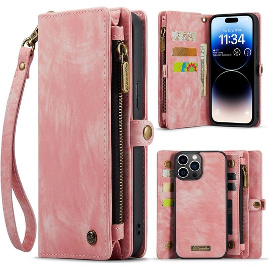Caseme 008 iPhone 14 Pro Max Hülle Abnehmbare 2in1 Klapphülle Geldbörse - Pink