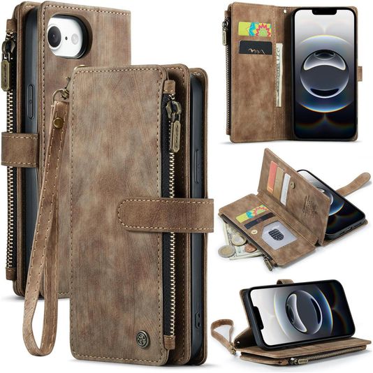 CaseMe C30 iPhone 17e Hülle Klapphülle Geldbörse - Braun
