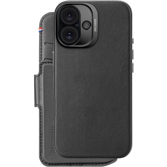 Decoded Detachable Wallet iPhone 16 MagSafe Hülle Echtes Leder Abnehmbare 2in1 Klapphülle Geldbörse - Schwarz