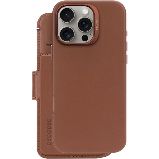 Decoded Detachable Wallet iPhone 16 Pro Max MagSafe Hülle Echtes Leder Abnehmbare 2in1 Klapphülle Geldbörse - Tan