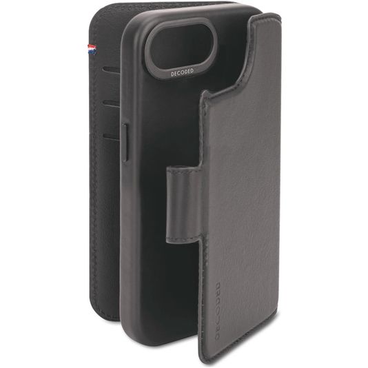 Decoded Detachable Wallet iPhone 16e Hülle Echtes Leder Abnehmbare 2in1 Klapphülle Geldbörse - Schwarz