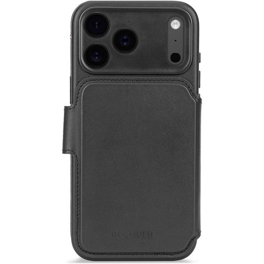 Decoded Detachable Wallet iPhone 17 Pro MagSafe Hülle Echtes Leder Abnehmbare 2in1 Klapphülle Geldbörse - Schwarz