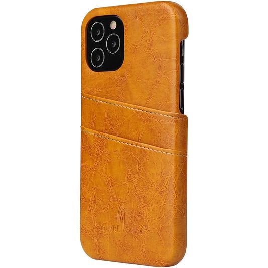 Fierre Shann Premium Card iPhone 12 Pro Hülle Backcover mit Kartenhalter - Cognac