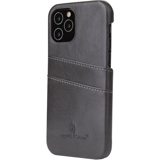 Fierre Shann Premium Card iPhone 12 Pro Hülle Backcover mit Kartenhalter - Grau