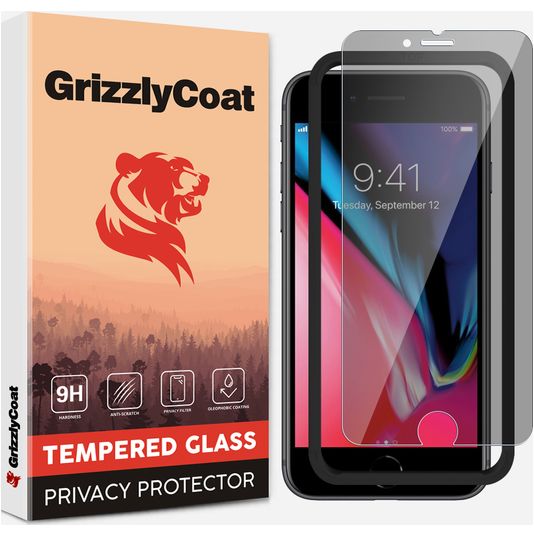 GrizzlyCoat Easy Fit AntiSpy iPhone 7 Panzerglas Gehärtetes Glas Displayschutz Privacy - Hüllenfreundlich + Applikator