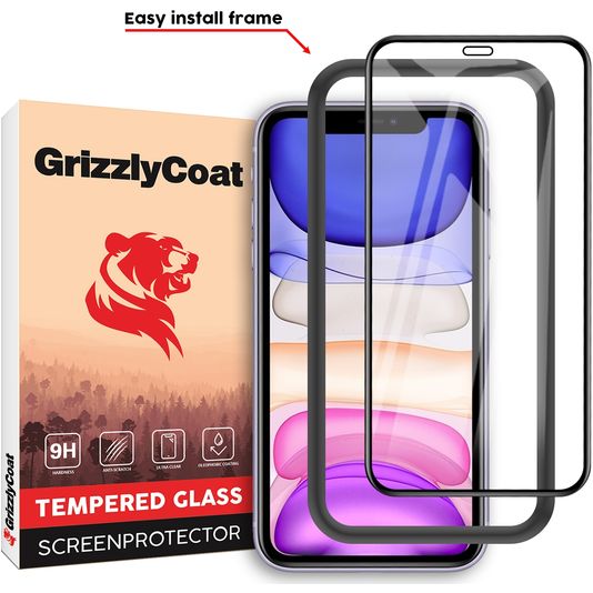 GrizzlyCoat Easy Fit iPhone 11 Panzerglas Gehärtetes Glas Displayschutz - Hüllenfreundlich + Applikator - Schwarz