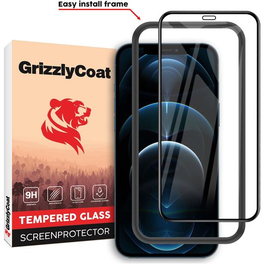 GrizzlyCoat Easy Fit iPhone 12 Pro Max Panzerglas Gehärtetes Glas Displayschutz - Hüllenfreundlich + Applikator - Schwarz