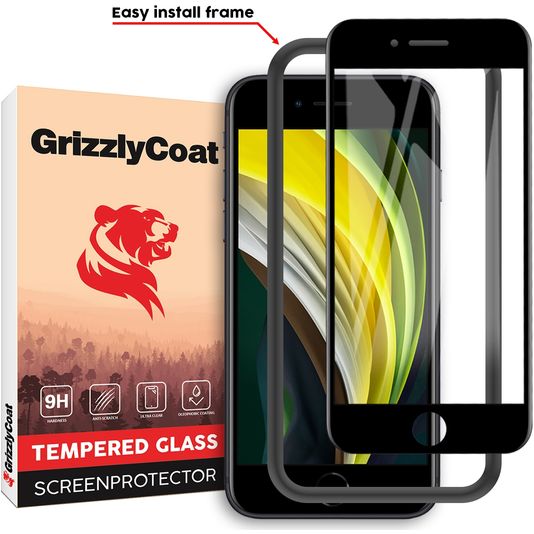 GrizzlyCoat Easy Fit iPhone SE (2022) Panzerglas Gehärtetes Glas Displayschutz - Hüllenfreundlich + Applikator - Schwarz