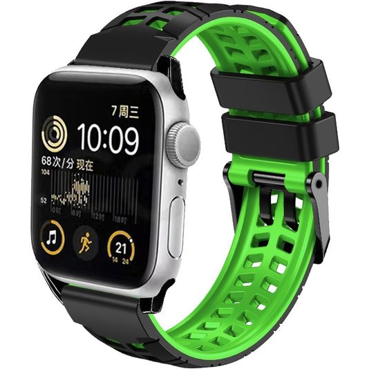 Mobigear Aero Armor Silikon Apple Watch Armband Dornschließe - 42/41/40/38 mm - Schwarz / Grün