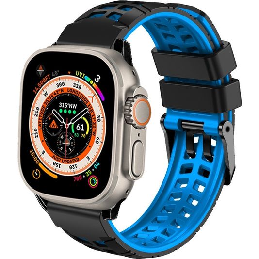 Mobigear Aero Armor Silikon Apple Watch Armband Dornschließe - 49/46/45/44 mm - Schwarz / Blau