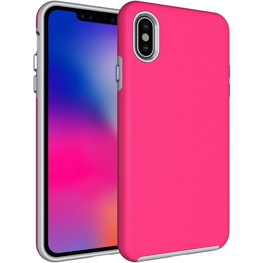 Schütze dein Apple iPhone XS Max vor Schäden mit dem Mobigear Antislip Backcover aus stabilem Kunststoff. Die Hülle kommt in der Farbe magenta und deckt die Rückseite und die Seite deines Handys ab. Die Vorderseite bleibt mit diesem Backcover frei, sodass dein Bildschirm immer direkt zugänglich ist.