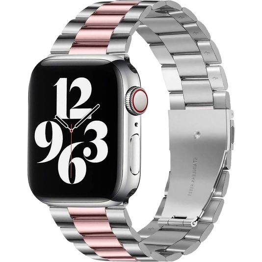 Mobigear Antwerp Edelstahl Apple Watch Armband Faltschließe - 49/46/45/44 mm - Pink / Silber