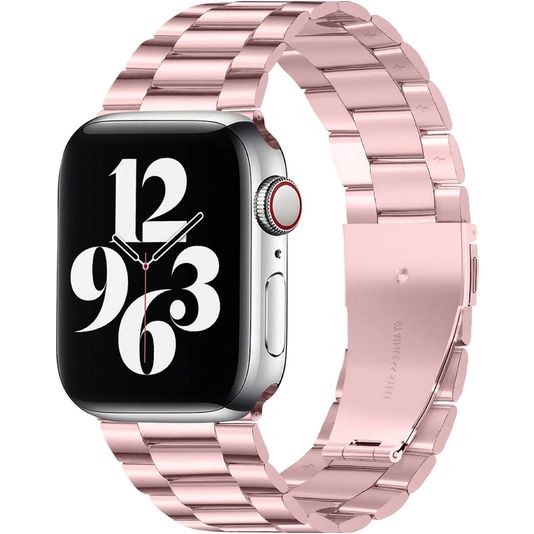 Wähle dieses Mobigear Antwerp Apple Watch Armband in der Farbe pink für einen zeitlosen und eleganten Look, der mühelos zu jedem Outfit passt. Ein Apple Watch-Band aus Stahl eignet sich für jeden Anlass, von leger bis geschäftlich. Das Gewicht von Stahl sorgt für ein Gefühl der Solidität und Ausgewogenheit am Handgelenk, was viele Träger/innen als angenehm empfinden. Außerdem ist das Apple Watch-Edelstahlarmband korrosions- und fleckenbeständig und damit ideal für alle Arten von Aktivitäten und Wetterbedingungen. Das Mobigear Antwerp Armband ist leicht zu reinigen und erfordert nur minimale Pflege.