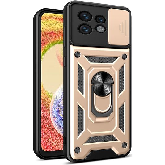 Mobigear Armor Ring Cam Slide Motorola Edge 40 Pro Hülle Hardcase Backcover Stoßfest mit Ringhalter und Kamera Slider - Gold