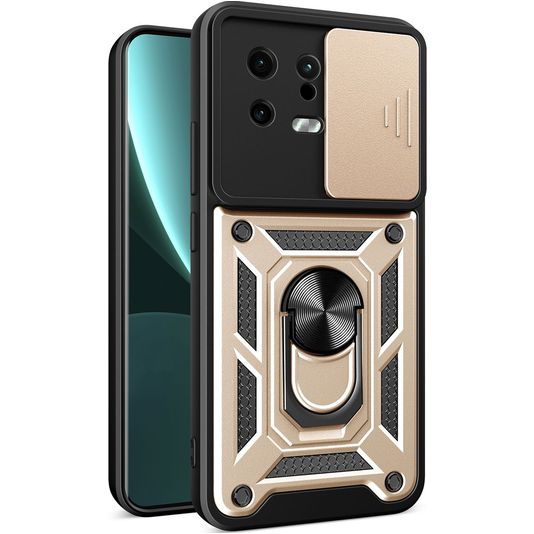 Mobigear Armor Ring Cam Slide Xiaomi 13 Hülle Hardcase Backcover Stoßfest mit Ringhalter und Kamera Slider - Gold