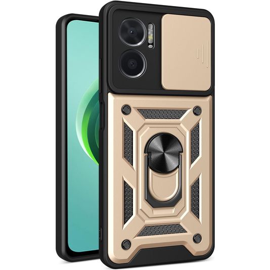 Mobigear Armor Ring Cam Slide Xiaomi Redmi 10 5G Hülle Hardcase Backcover Stoßfest mit Ringhalter und Kamera Slider - Gold