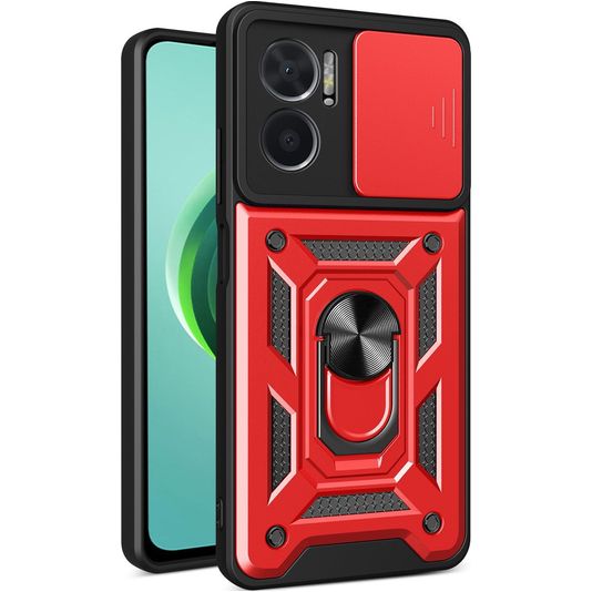 Mobigear Armor Ring Cam Slide Xiaomi Redmi 10 5G Hülle Hardcase Backcover Stoßfest mit Ringhalter und Kamera Slider - Rot