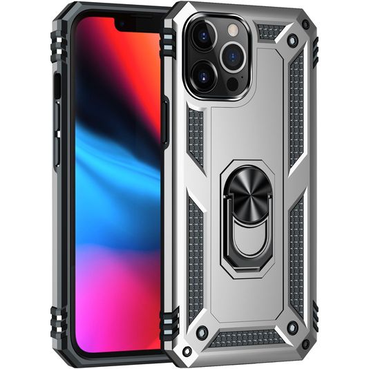 Mobigear Armor Ring iPhone 13 Pro Max Hülle Hardcase Backcover Stoßfest mit Ringhalter - Silber