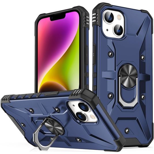 Mobigear Armor Ring iPhone 14 Hülle Hardcase Backcover Stoßfest mit Ringhalter - Blau