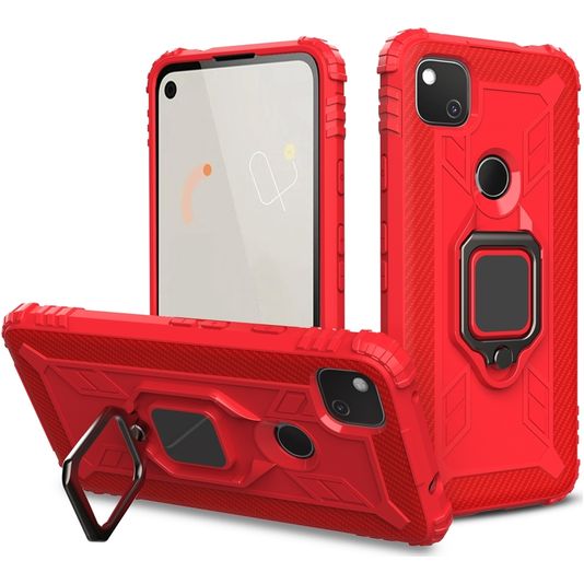 Mobigear Armor Ring Google Pixel 4a Hülle Hardcase Backcover Stoßfest mit Ringhalter - Rot