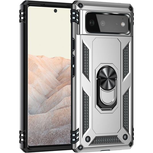 Mobigear Armor Ring Google Pixel 6 Hülle Hardcase Backcover Stoßfest mit Ringhalter - Silber