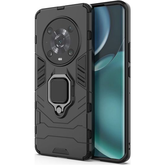 Mobigear Armor Ring HONOR Magic 4 Pro Hülle Hardcase Backcover Stoßfest mit Ringhalter - Schwarz