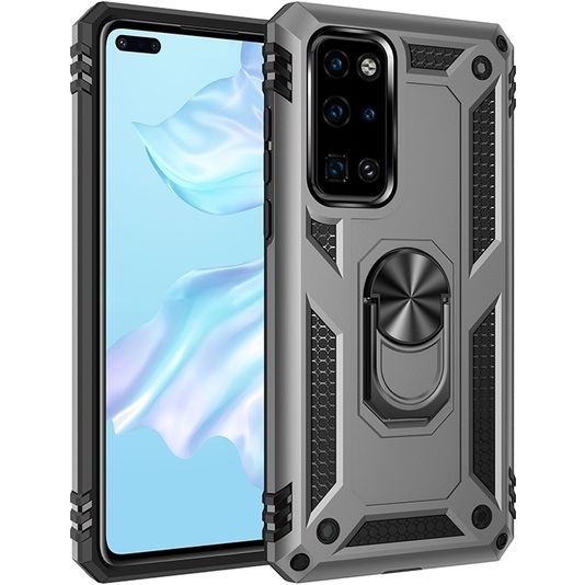 Mobigear Armor Ring Huawei P40 Hülle Hardcase Backcover Stoßfest mit Ringhalter - Grau