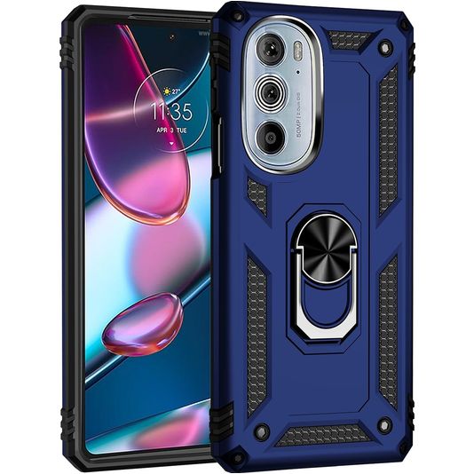 Mobigear Armor Ring Motorola Edge 30 Pro Hülle Hardcase Backcover Stoßfest mit Ringhalter - Blau