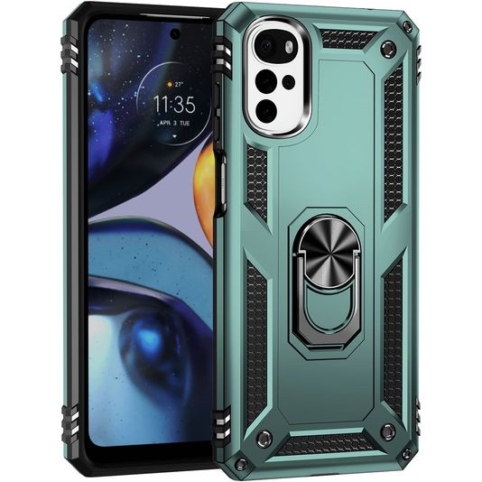 Mobigear Armor Ring Motorola Moto G22 Hülle Hardcase Backcover Stoßfest mit Ringhalter - Grün