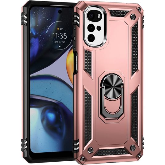 Mobigear Armor Ring Motorola Moto G22 Hülle Hardcase Backcover Stoßfest mit Ringhalter - Roségold