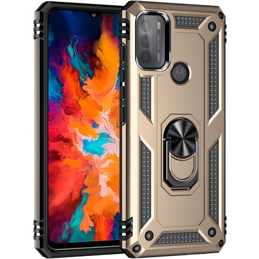 Mobigear Armor Ring Motorola Moto G50 Hülle Hardcase Backcover Stoßfest mit Ringhalter - Gold