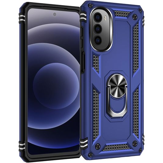 Mobigear Armor Ring Motorola Moto G82 Hülle Hardcase Backcover Stoßfest mit Ringhalter - Blau
