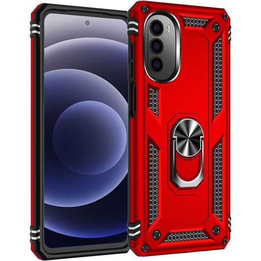 Mobigear Armor Ring Motorola Moto G82 Hülle Hardcase Backcover Stoßfest mit Ringhalter - Rot