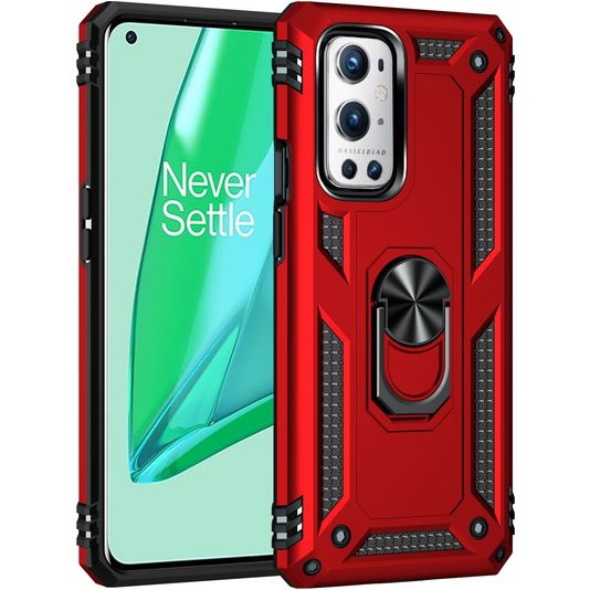Mobigear Armor Ring OnePlus 9 Pro Hülle Hardcase Backcover Stoßfest mit Ringhalter - Rot