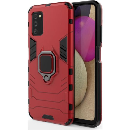 Mobigear Armor Ring Samsung Galaxy A03s Hülle Hardcase Backcover Stoßfest mit Ringhalter - Rot