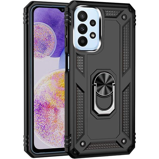 Mobigear Armor Ring Samsung Galaxy A23 Hülle Hardcase Backcover Stoßfest mit Ringhalter - Schwarz