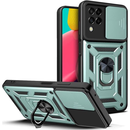 Mobigear Armor Ring Cam Slide Samsung Galaxy M53 Hülle Hardcase Backcover Stoßfest mit Ringhalter - Grün