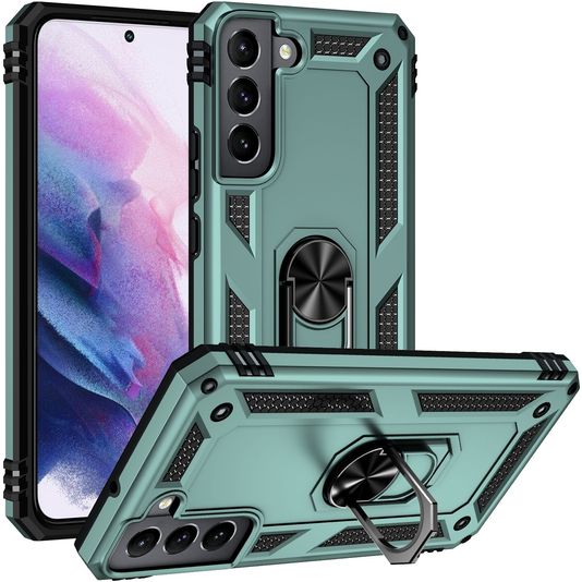 Mobigear Armor Ring Samsung Galaxy S22 Hülle Hardcase Backcover Stoßfest mit Ringhalter - Grün