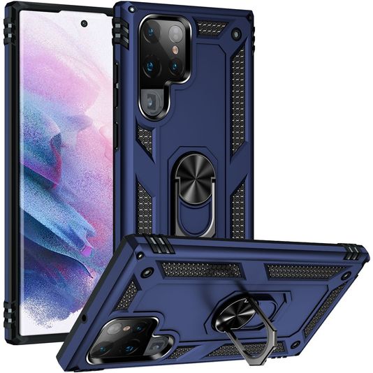 Mobigear Armor Ring Samsung Galaxy S22 Ultra Hülle Hardcase Backcover Stoßfest mit Ringhalter - Blau